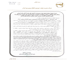 - استاندارد ملی ایران (ISIRI) برای تمامی محصولات تولیدی.
