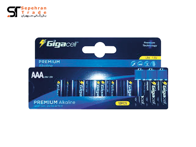 باتری نیم قلمی پریمیوم آلکالاین کارتی سایز AAA بسته 12 عددی گیگاسل