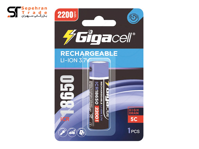 باتری پلیسی 2200 میلی آمپر 5C شارژی کارتی سایز 18650 گیگاسل