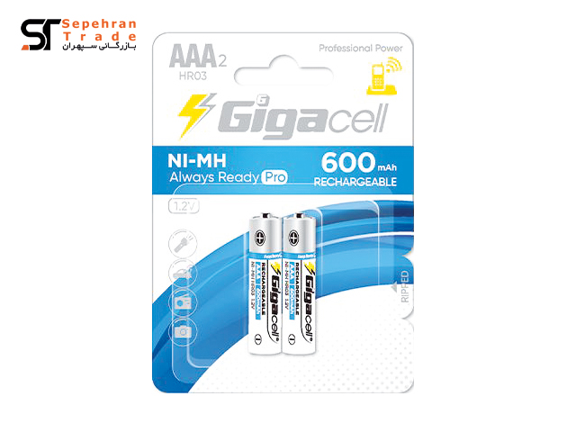 باتری نیم قلمی 600 میلی آمپر پرو شارژی کارتی سایز AAA بسته 2 عددی گیگاسل