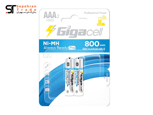 باتری نیم قلمی 800 میلی آمپر پرو شارژی کارتی سایز AAA بسته 2 عددی گیگاسل