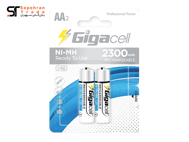 باتری قلمی 2300 میلی آمپر شارژی کارتی سایز AA بسته 2 عددی گیگاسل