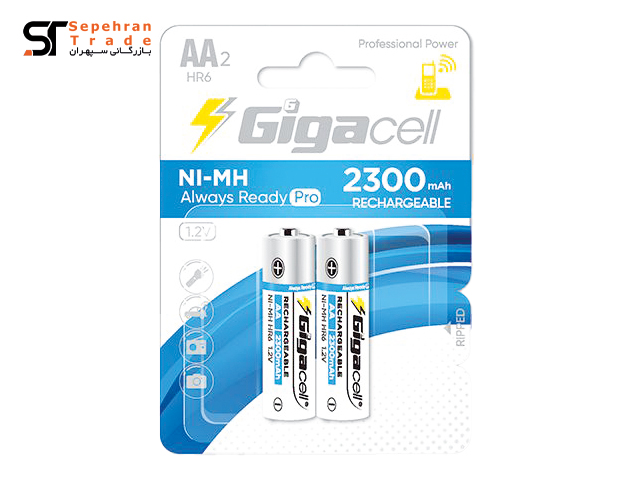 باتری قلمی 2300 میلی آمپر پرو شارژی کارتی سایز AA بسته 2 عددی گیگاسل