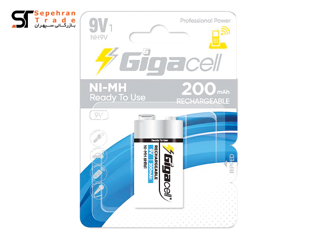 باتری کتابی 9 ولت 200 میلی آمپر شارژی کارتی گیگاسل