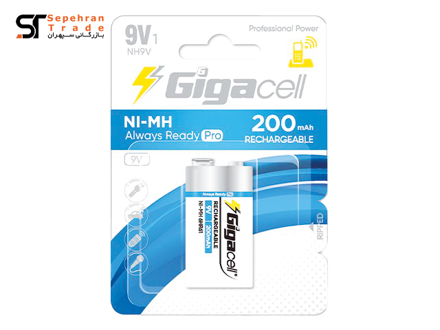 باتری کتابی 9 ولت 200 میلی آمپر پرو شارژی کارتی گیگاسل