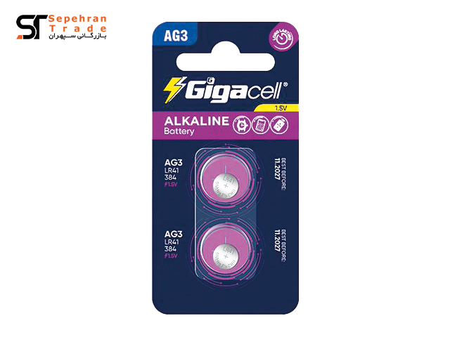 باتری سکه ای کارتی سایز AG3 بسته 2 عددی گیگاسل