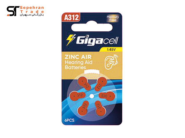 باتری سمعکی بدون جیوه کارتی سایز A312 بسته 6 عددی گیگاسل
