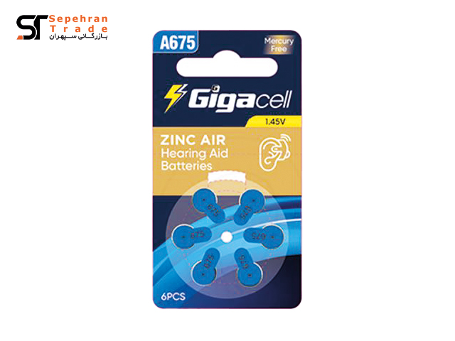 باتری سمعکی بدون جیوه کارتی سایز A675 بسته 6 عددی گیگاسل