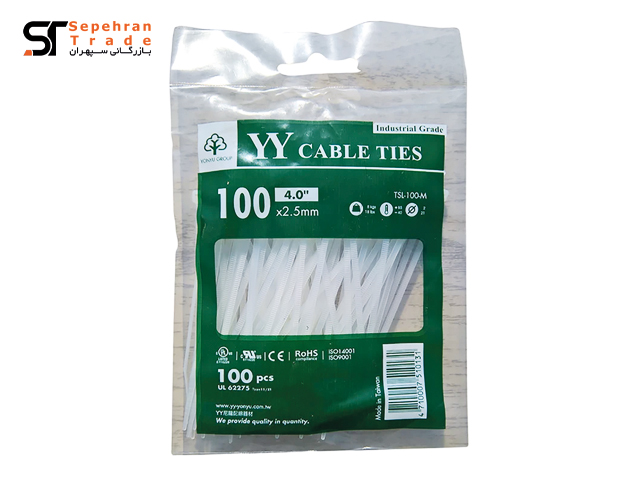 بست کمربندی پلاستیکی سایز 2.5*100 بسته 100 عددی سفید وای وای YY