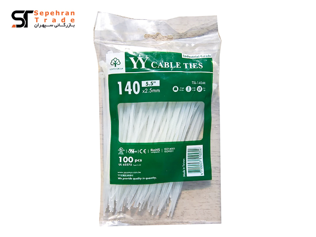 بست کمربندی پلاستیکی سایز 2.5*140 بسته 100 عددی سفید وای وای YY