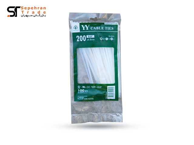 بست کمربندی پلاستیکی سایز 4.8*200 بسته 100 عددی سفید وای وای YY